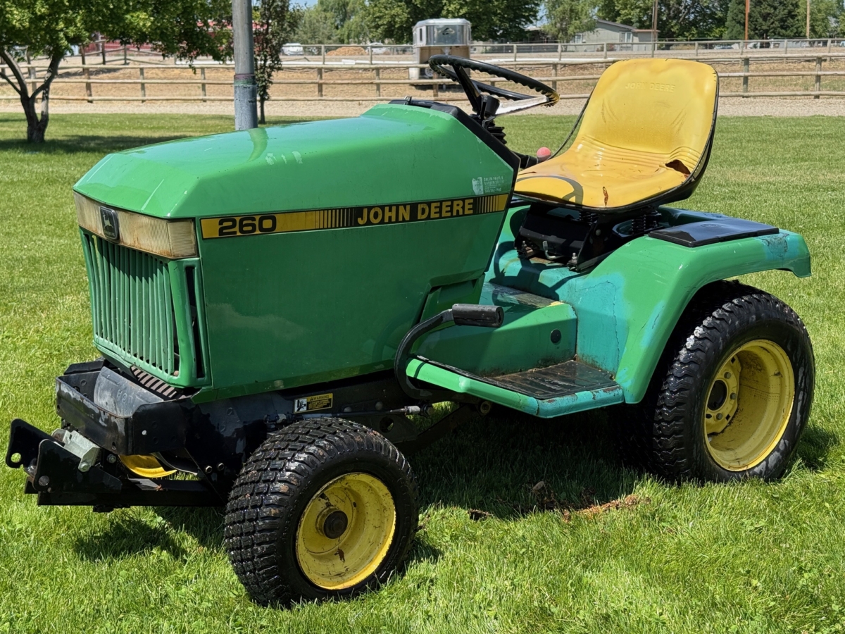 OUTDOORS: John Deere 260 garden tractor w/snow blade ~ Kids go cart w/7hp engine ~ Ex-Cell 2300psi pressure washer w/6hp engine ~ Karcher G2600 pressure washer w/ 173cc engine ~ Yard Edger w/Briggs & Stratton 2hp engine ~ 2006 Rocketa 250cc atv needs work ~ Yard tools ~