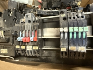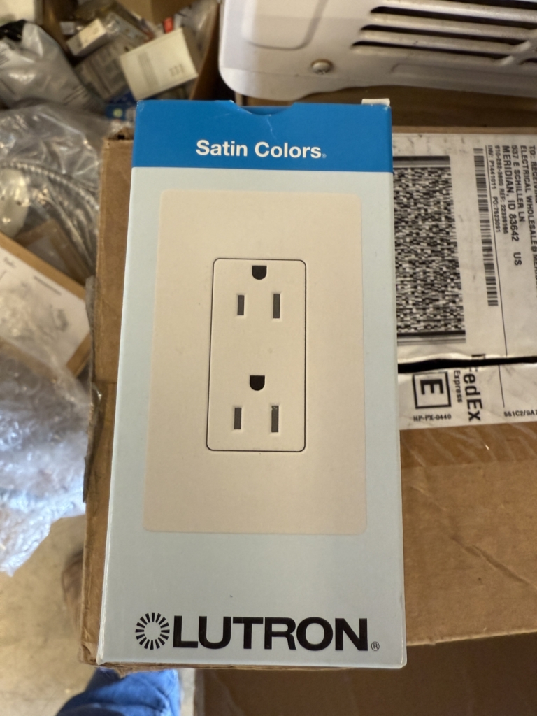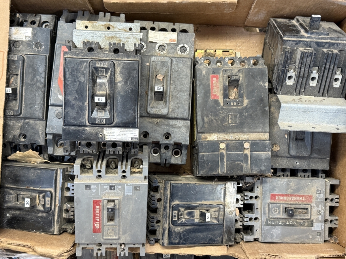 ELECTRICAL SUPPLIES: Gould 600v switch ~ 100’s of household/shop breakers ~ High voltage breakers ~ Wire nuts ~ Lighting inventory ~ Boxes of Coaxial cable ~ NIB ceiling fan ~ Vent fans ~ (2) 6 pack 14w 3000k led lamps ~ Electrical wire ~ Large electrical supply inventory; boxes, cover plates, conduit couplers, 1/2” & 3/4” flex conduit, light switches, Lutron outlets ~ (10 boxes) cat 6 and more ~